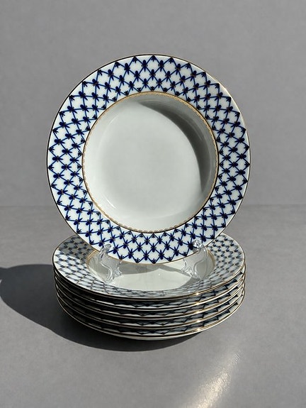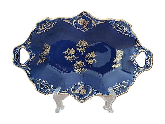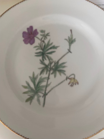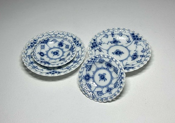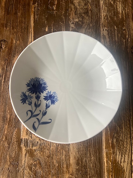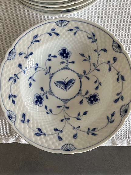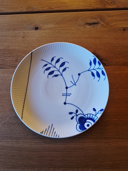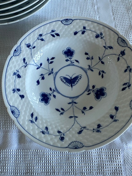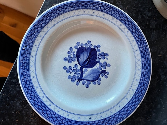 Bing & Grøndahl blå nellike kaffekop og kage tallerken i blå og hvid porcelæn