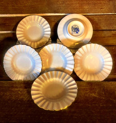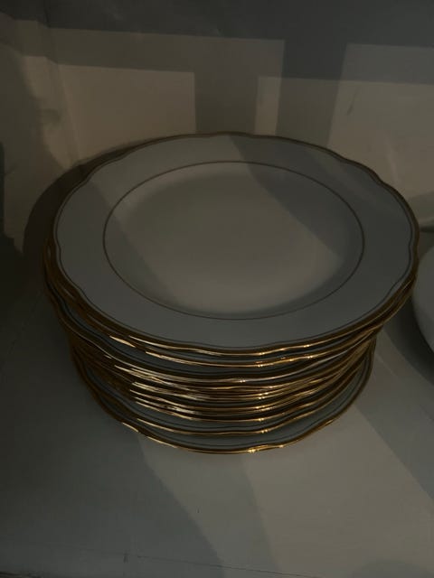 Dybe tallerkener fra royal Copenhagen Tradition hvid halvblonde med guldkant