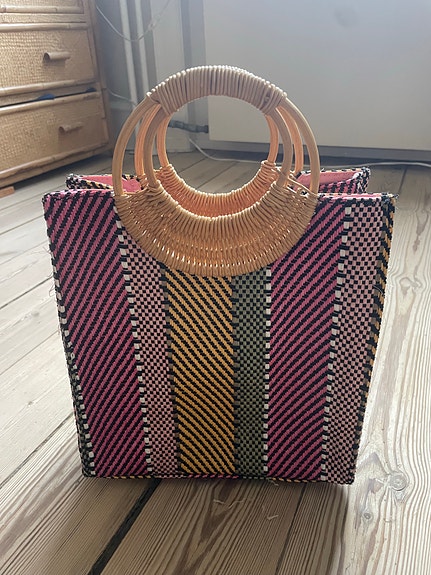 Vintage taske m træ håndtag