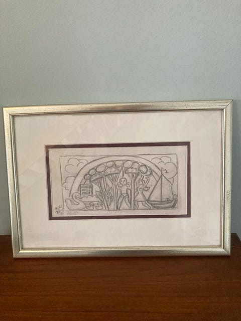 Tegning, sign. Henry Heerup