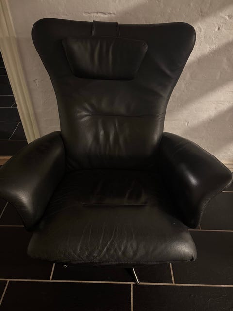 Ældre lænestol i sort læder