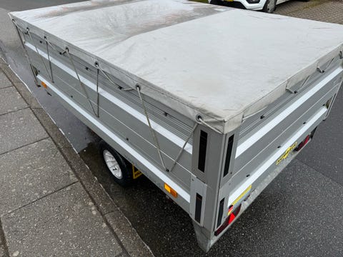 Trailer med presenning og rampe