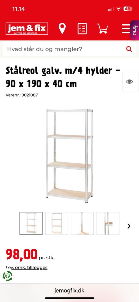 Stål hylder til reol værksted