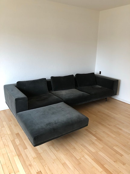 Grå velour sofa