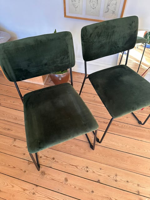 Grøn velour spisebordsstol