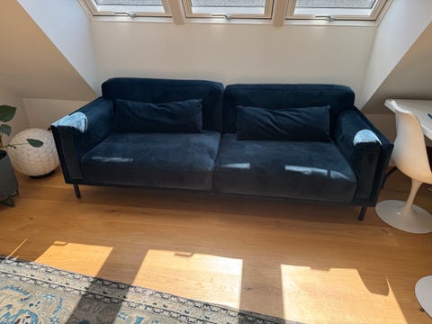 Meget velholdt veloursofa i kongeblå