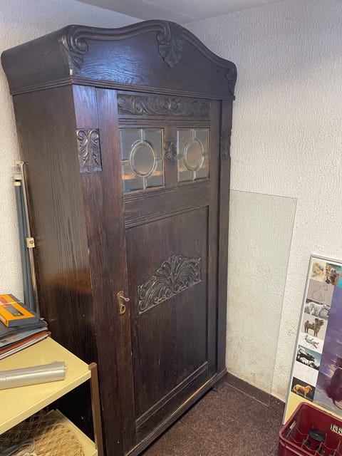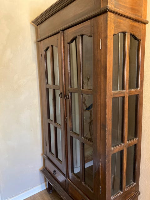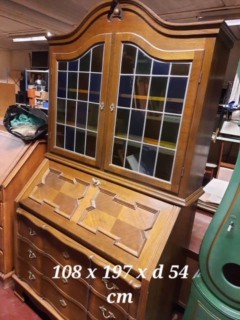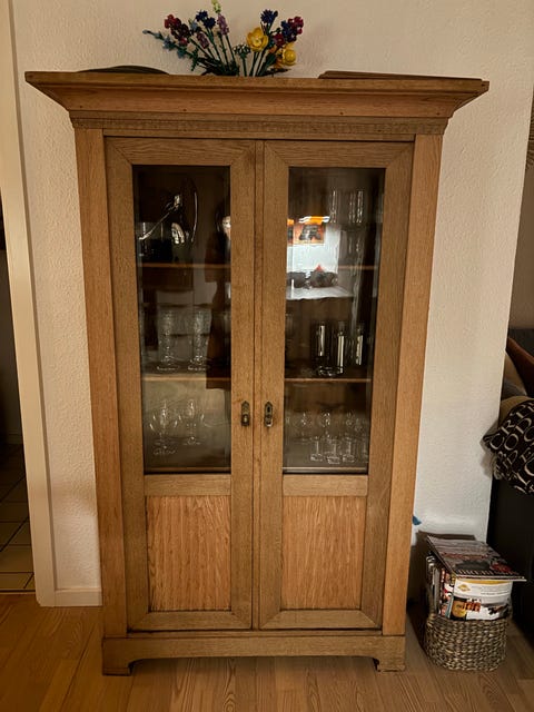 Antikt egetræsskab med glaslåger