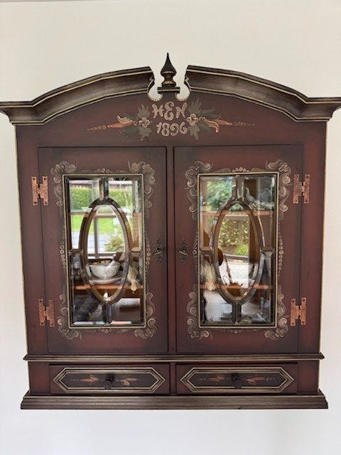 Malet vægskab m. Glaslåger