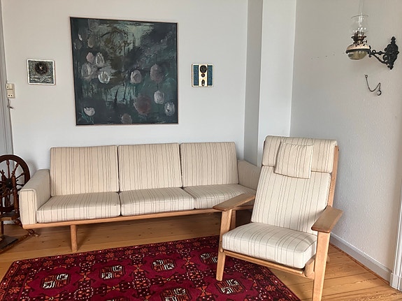 Hans J Wegner Ge-290/3 Pers. Sofa mørkegrå Hallingdal 180 uld og stel af Egetræ.