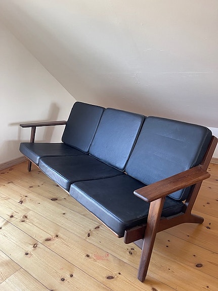 Hans J. Wegner Ge-290/3 Pers.Sofa i mørkegrå Hallingdal 180 uld, stel Egetræ.