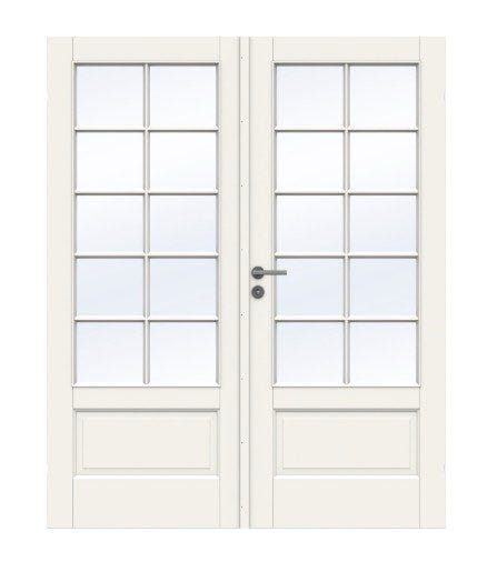 Hvidt træ dobbeltdør med glasfelter