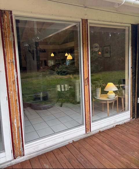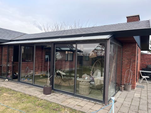 Trævinduer og terrassedør med glas