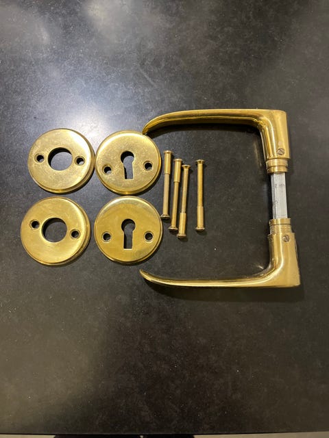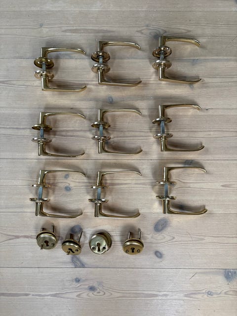 9 x dørhåndtag i messing