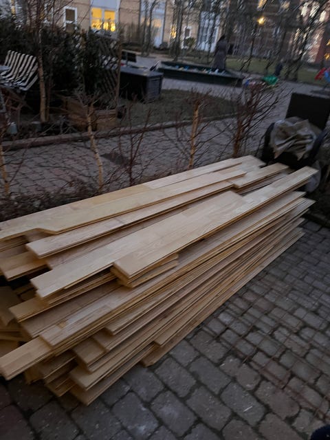 For eksempel kan gulve og lister, døre, vinduer, tapet og maling nemt skifte hænder på DBA. Der kan også være hele byggesæt til salg.