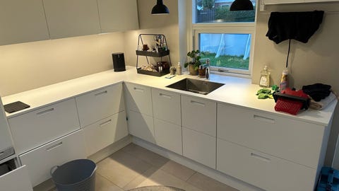 Du kan spare på udgifterne ved at købe en del af møblerne brugt – for eksempel køkkenskabslåger, skilleplader eller bordplader. Samtidig bør du tænke over, om en totalrenovering af køkkenet er nødvendig, eller om det vil være nok at få nye køkkenlåger til gamle skabe. Overvejer du at købe brugte køkkenmøbler, skal du være opmærksom på dimensionerne, materialet og møblernes stand.