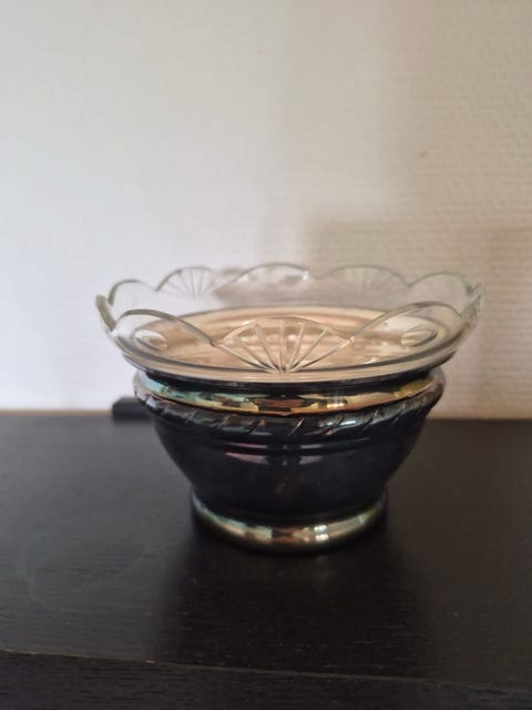 Sølvskål med glasindsats