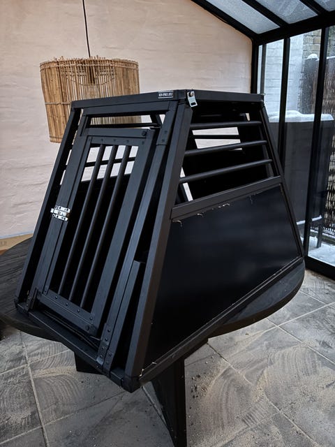 Dobbel hundebur i sort metal