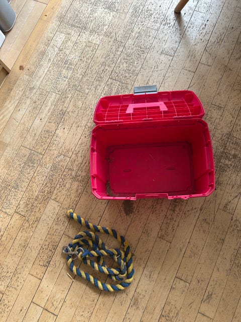 Rød plastkasse med låg