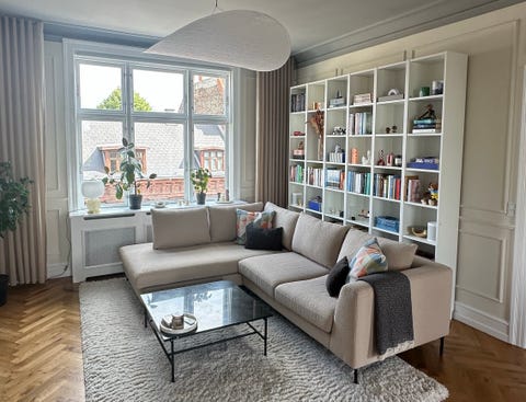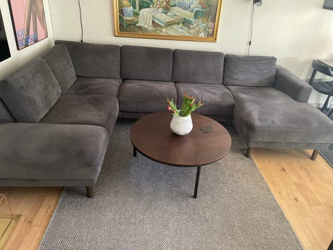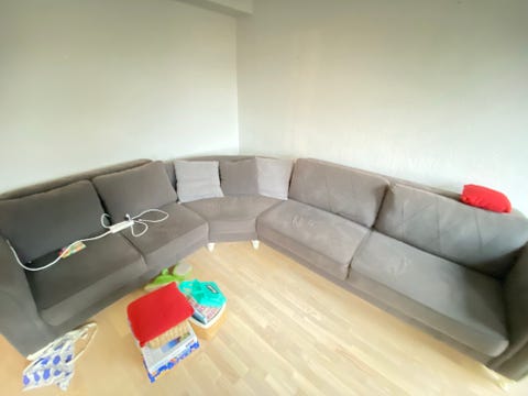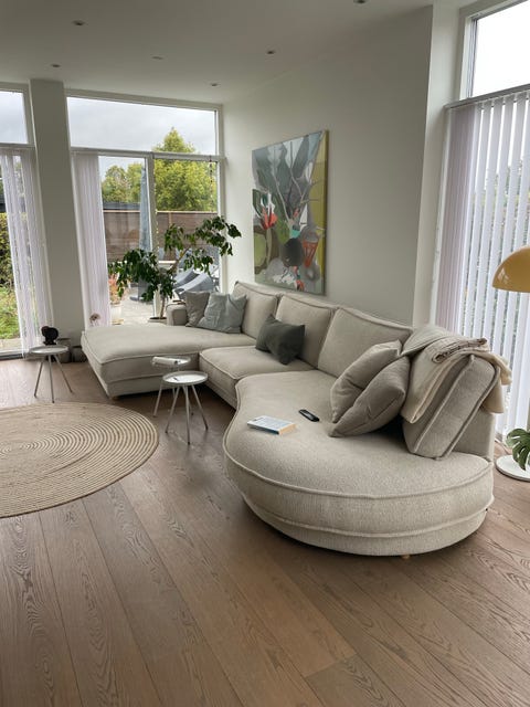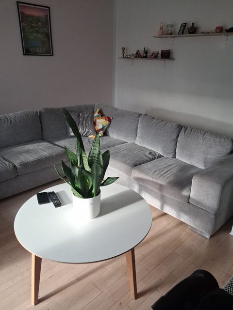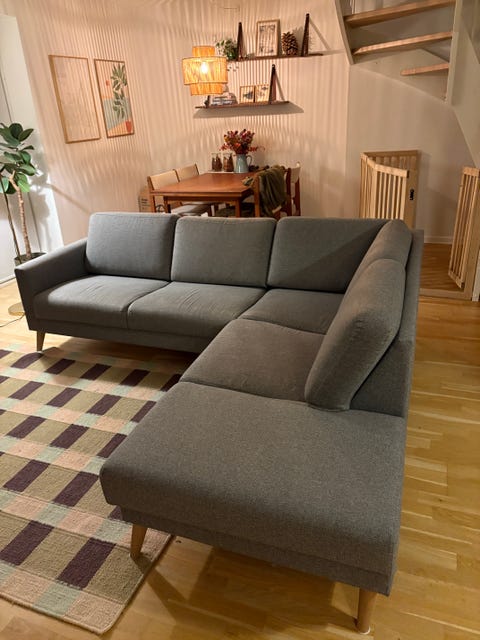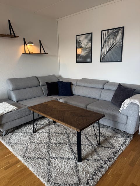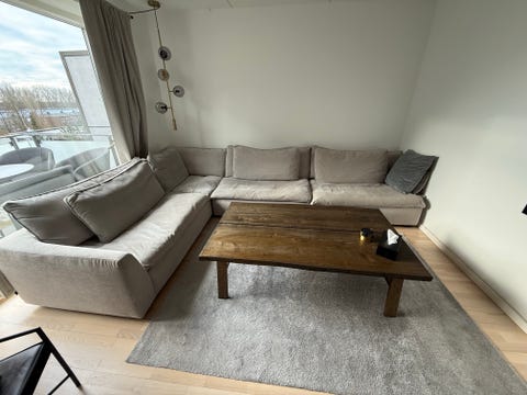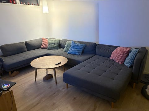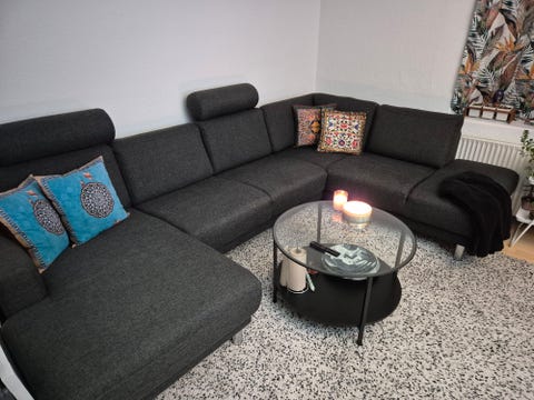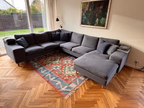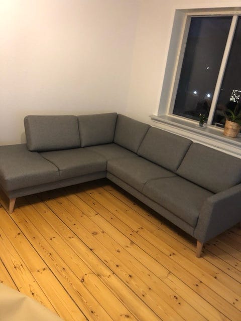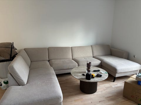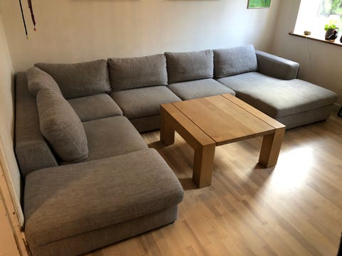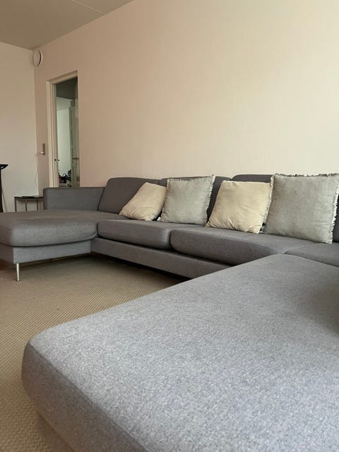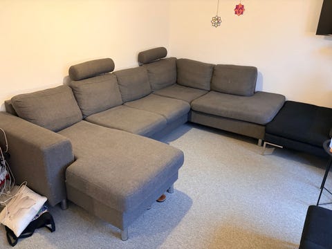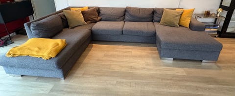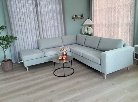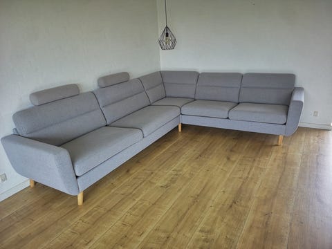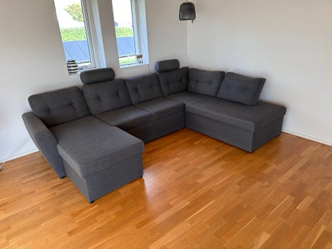 Lysegrå U-sofa med chaiselong.
