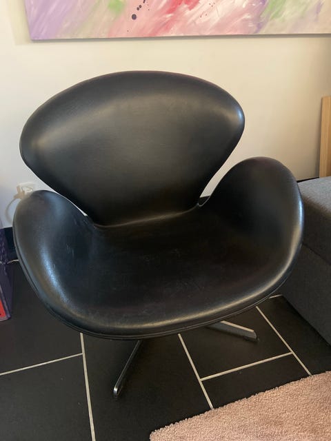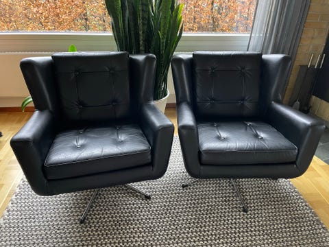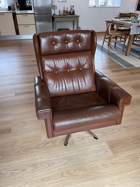 Retro læder lænestol på drejefod