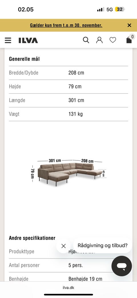 2 personers sofa