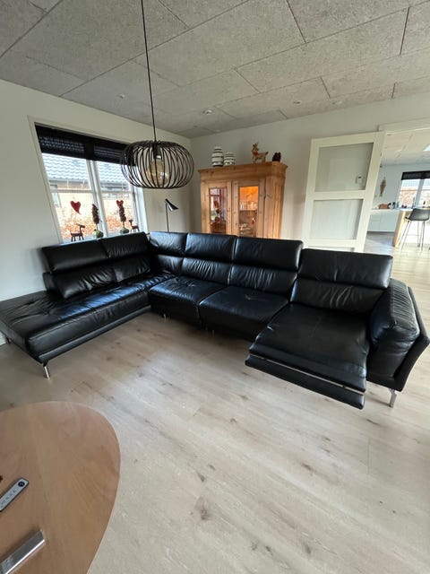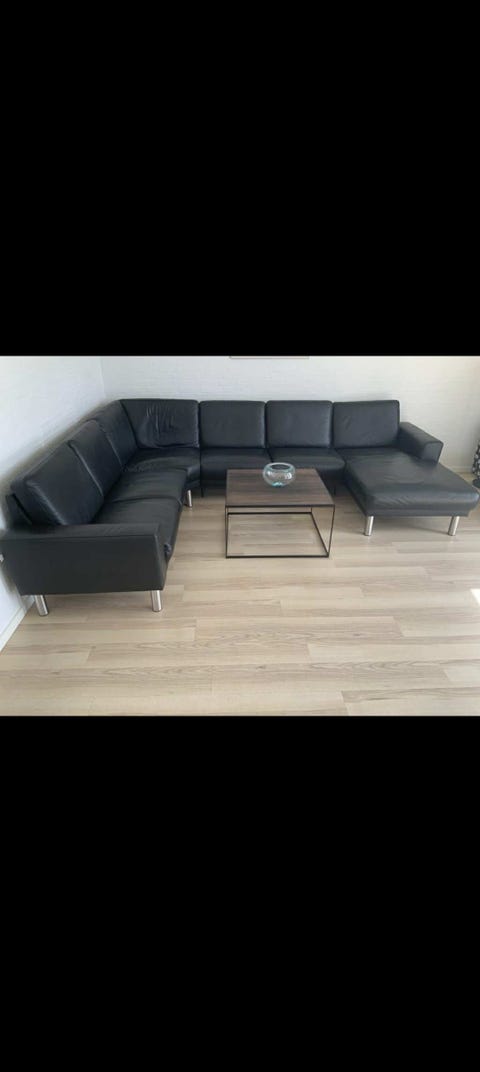 Yderst velholdt hjørnesofa i sort læder