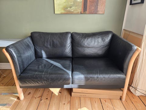 3 Pers sorte Lædersofa