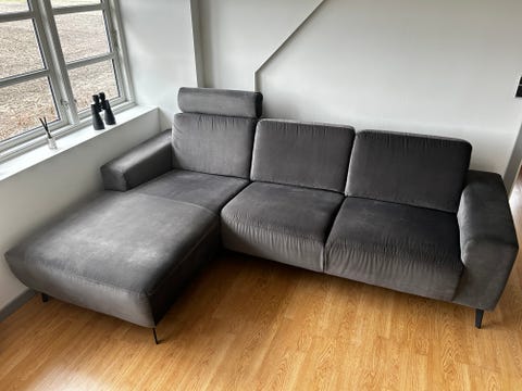 Hurup lædersofa med chaiselong- sort