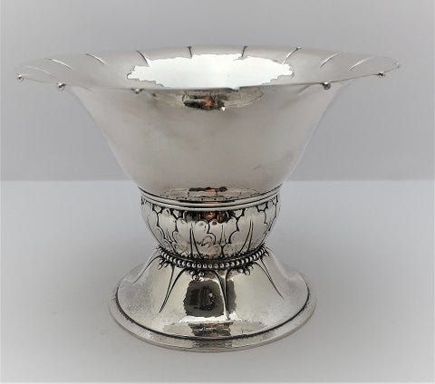 10.000 kr.August Thomsen. Hammerslået sølvskål (830). Højde 16 cm. DiaKøbenhavn V27. feb. 2026Lundin Antique