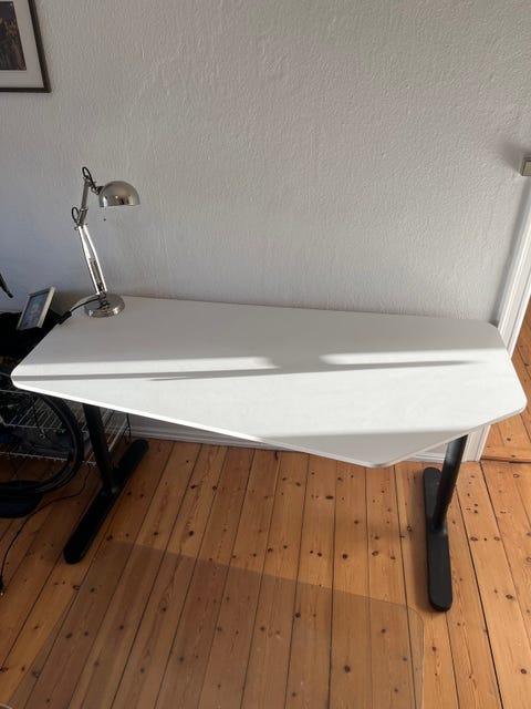 Find et brugt skrivebord til en lavere pris. På DBA er der 3.332 annonce(r), der sælger skriveborde. ## Et lille skrivebord kan gøre stor glæde Et skrivebord, der er unødvendigt for en anden, kan være det helt rigtige til dine behov. Især et skrivebord i massivt træ eller et elektrisk skrivebord kan være et dyrt køb, og du kan finde et velegnet produkt væsentligt billigere brugt. Et godt skrivebord har en velegnet højde for brugeren eller kan justeres. Når du gennemser annonce(r)ne, bør du tjekke bordets dimensioner og sammenligne dem med den bedste arbejdshøjde for dig.
