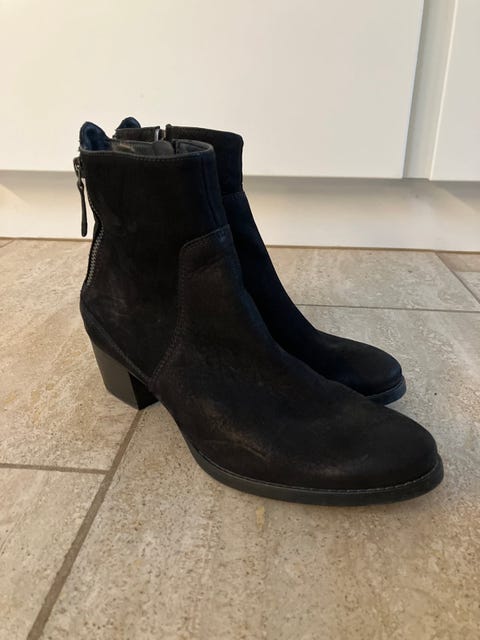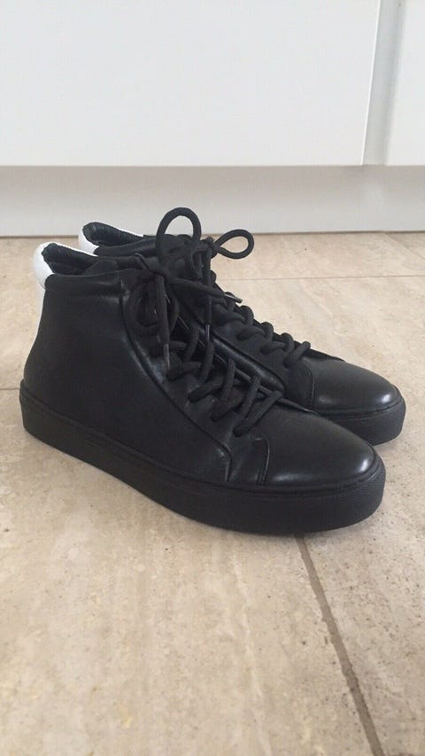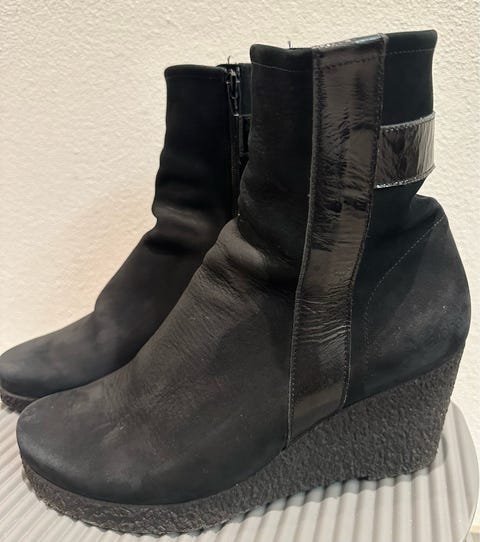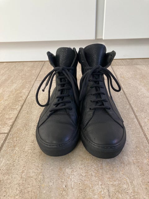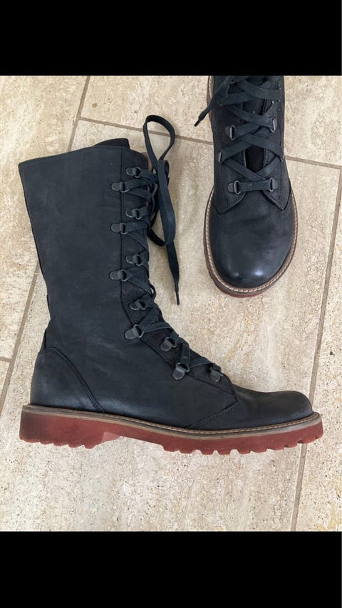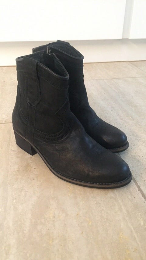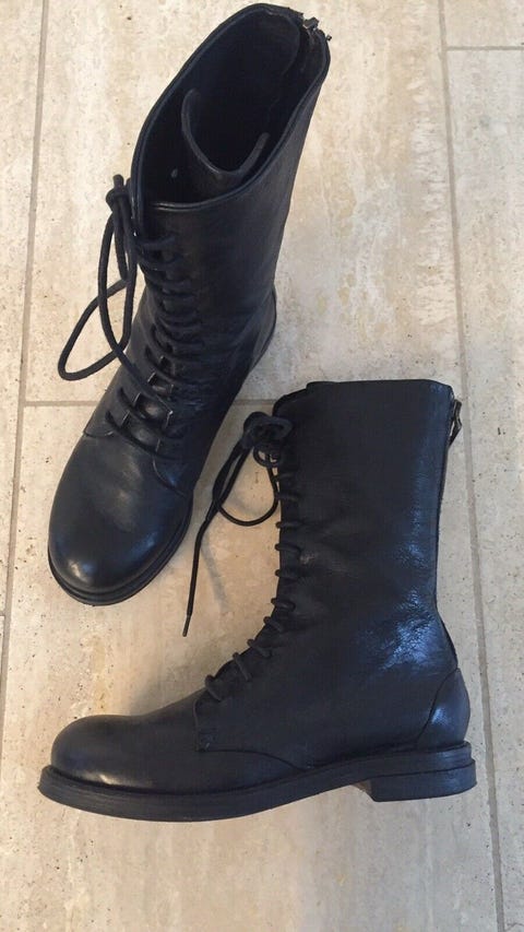Valentino Garavani – Ubrugte sorte langskaftede læderstøvler med gyldne nitter
